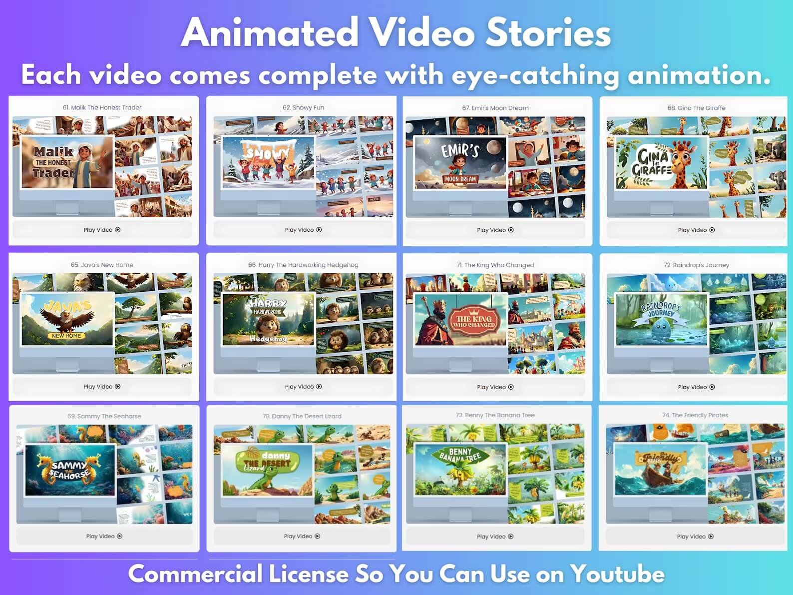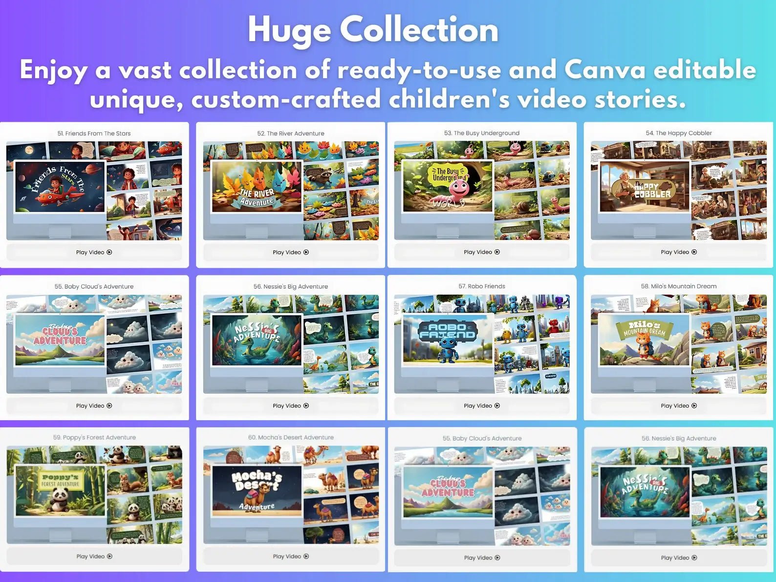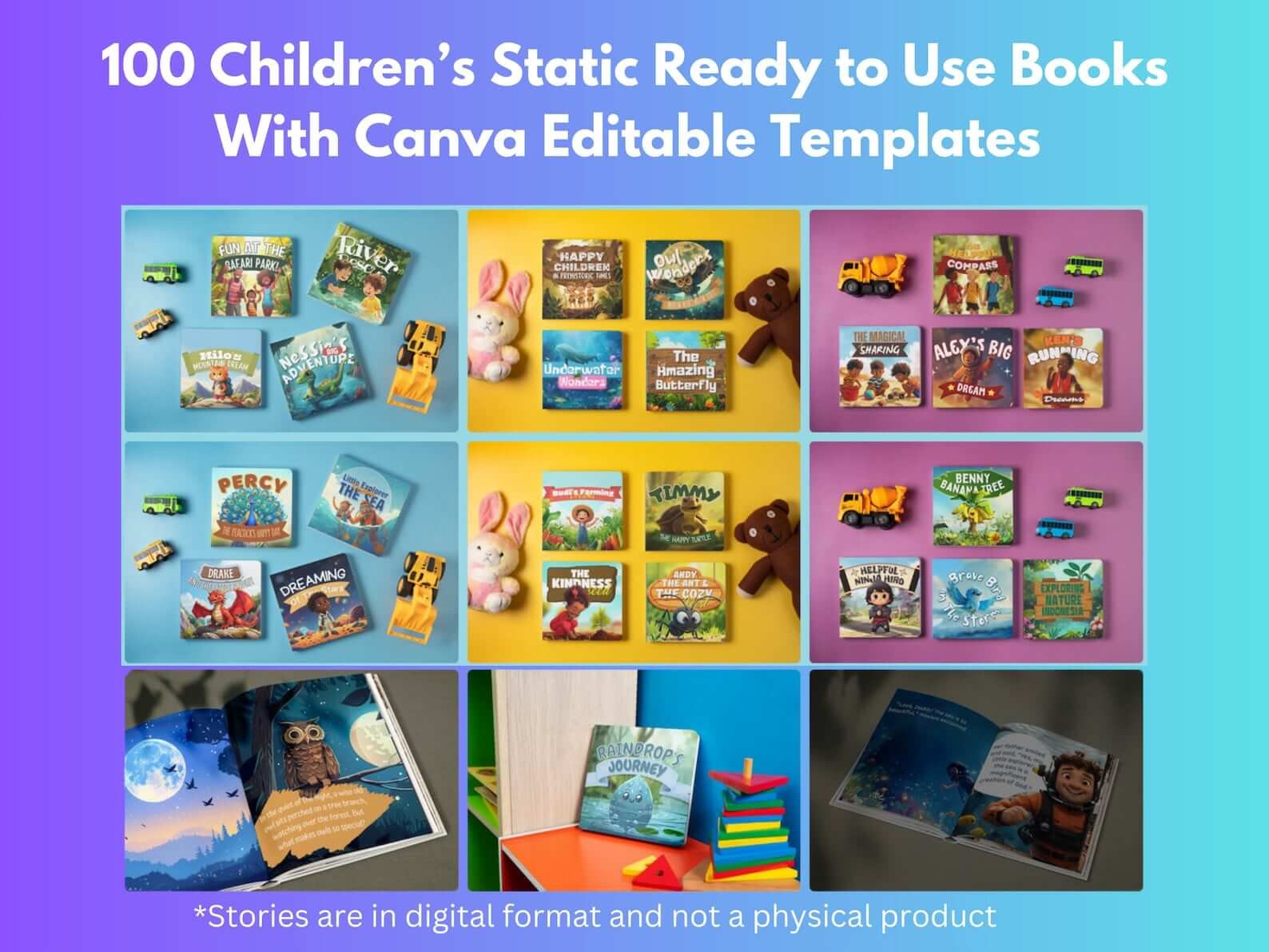 Inside this PLR Children's Collection, you will get lifetime access to 100 Children's Stories + 150 PLR Kids Videos & Editable Templates that you can customize and upload to your own shop.