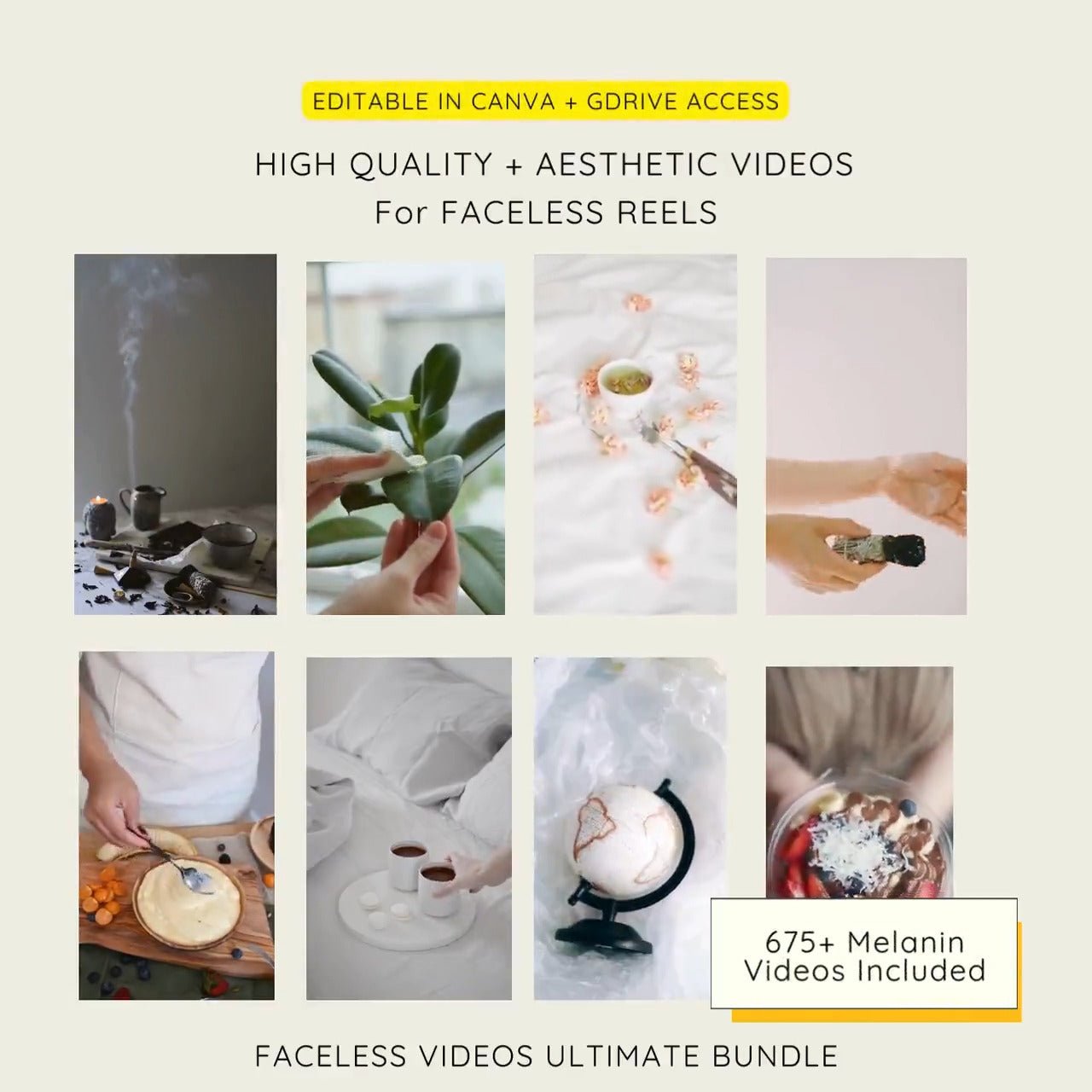 Your faceless social media just got a whole lot easier and more aesthetically pleasing! Transform your social media game with over 1750+ aesthetic videos to curate your own faceless reels.