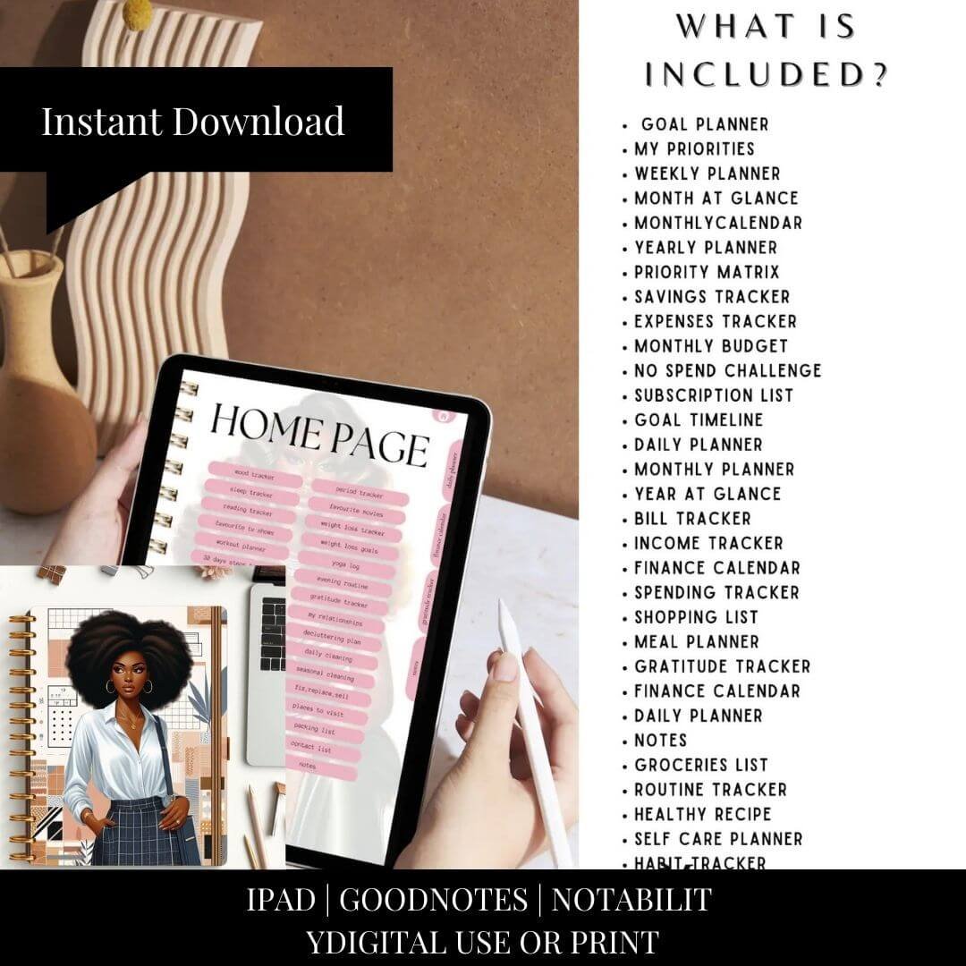 Step into the world of self-discovery and empowerment with That Girl Planner - an all-encompassing and hyperlinked organizer designed to celebrate every aspect of a woman's journey.