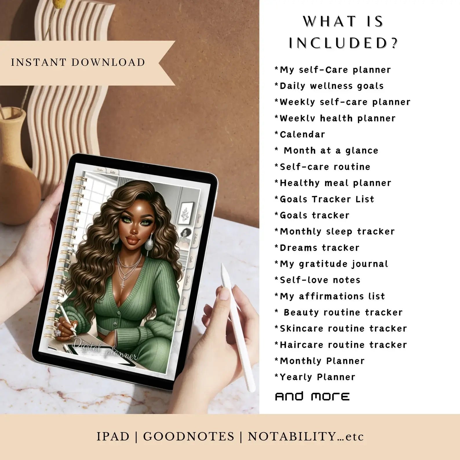 More than just a planner, it's a celebration of womanhood, empowering you to embrace organization, mental well-being, self-care, and creative expression in one beautifully designed package.